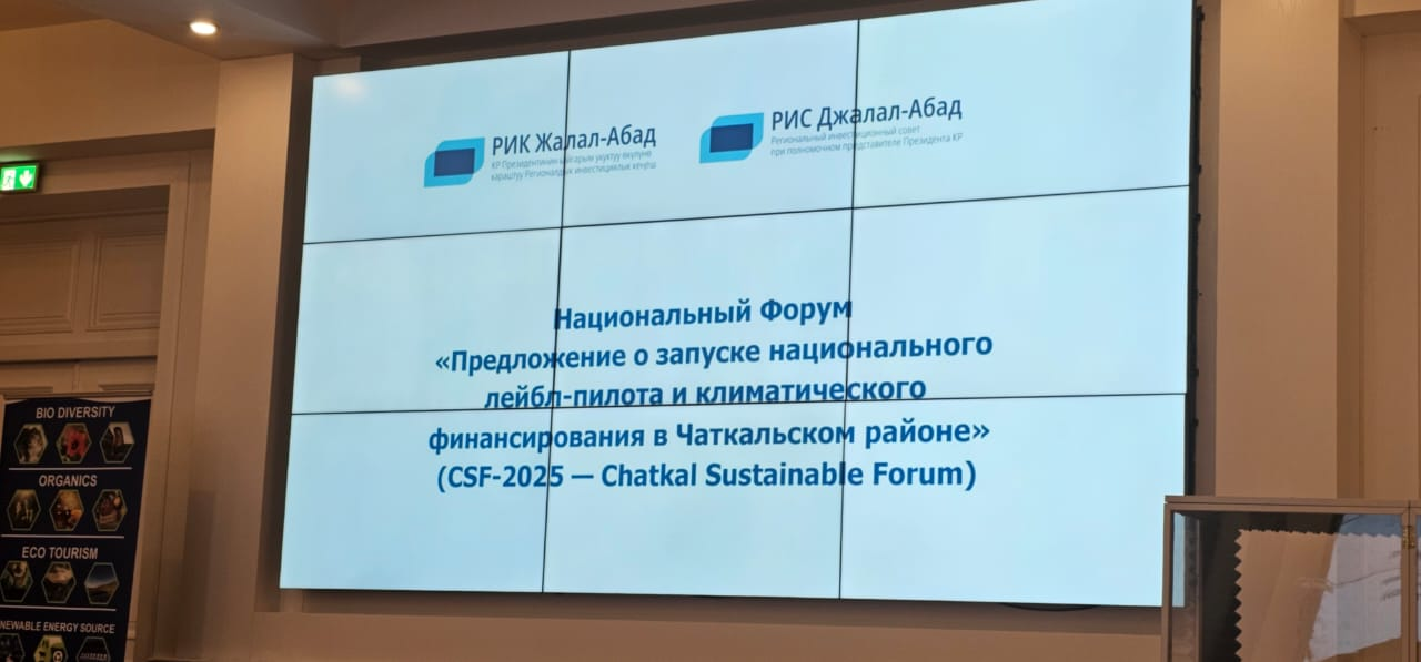 The National Forum “Proposal to Launch a National Label Pilot and Climate Financing in the Chatkal District” (CSF-2025) was held in Bishkek. The forum presented a concept for establishing a pilot green economy zone in Chatkal and mechanisms for attracting international climate financing. The event brought together representatives of the government, профильных ministries, international organizations, and the expert community. The Hungarian–Kyrgyz Development Fund was represented by Urmat Kydyrganov, Manager of the Finance and Analytics Service.